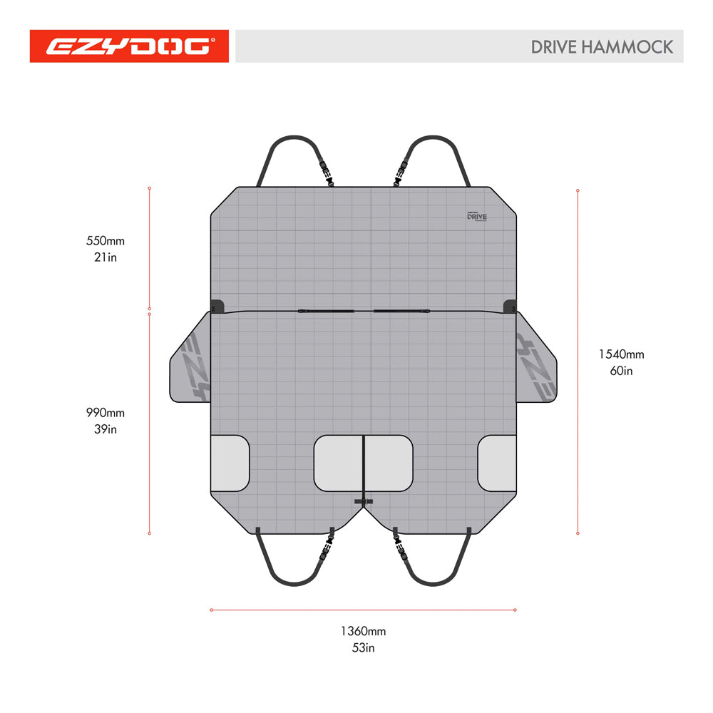 Perfect for any dog size and vehicle, the Drive Hammock is also extremely easy to clean after use. All dirt and debris that is caught by the cover can easily be removed with a quick shake and a wash in warm soapy water. The water-resistant polyester cover allows dirt and stains to be simply wiped down after each use.