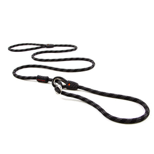 Crafted from high-quality reflective climbing rope for durability and visibility, it features an adjustable metal slider and rubber stopper, acting as a limited-slip collar for dogs of all sizes.