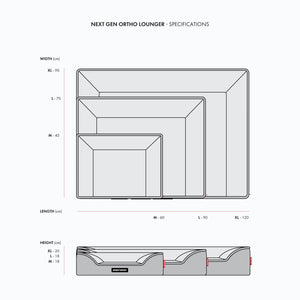The outer fabrication of the Next Gen Ortho Lounger is completely machine washable and has been carefully designed to withstand the demands of daily use whilst maintaining a long-lasting shape and colour-fast colour. A waterproof inner foam cover protects the foam core from spills and accidents, keeping it fresh and hygienic and easy to eliminate any built-up odours.