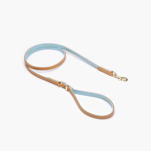 The stylish Oxford Leather Two Tone LITE Leash from EzyDog is crafted from 100% full-grain leather and blended with a PU backing. It also features brushed gold metal hardware.