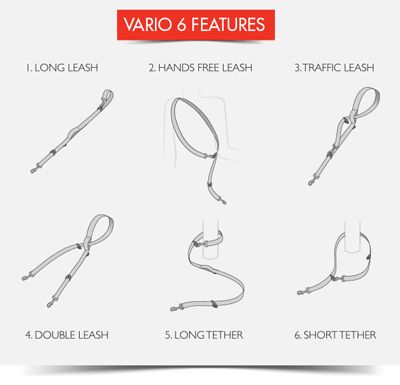 The 6 Way leash system enables the leash to be used as:
