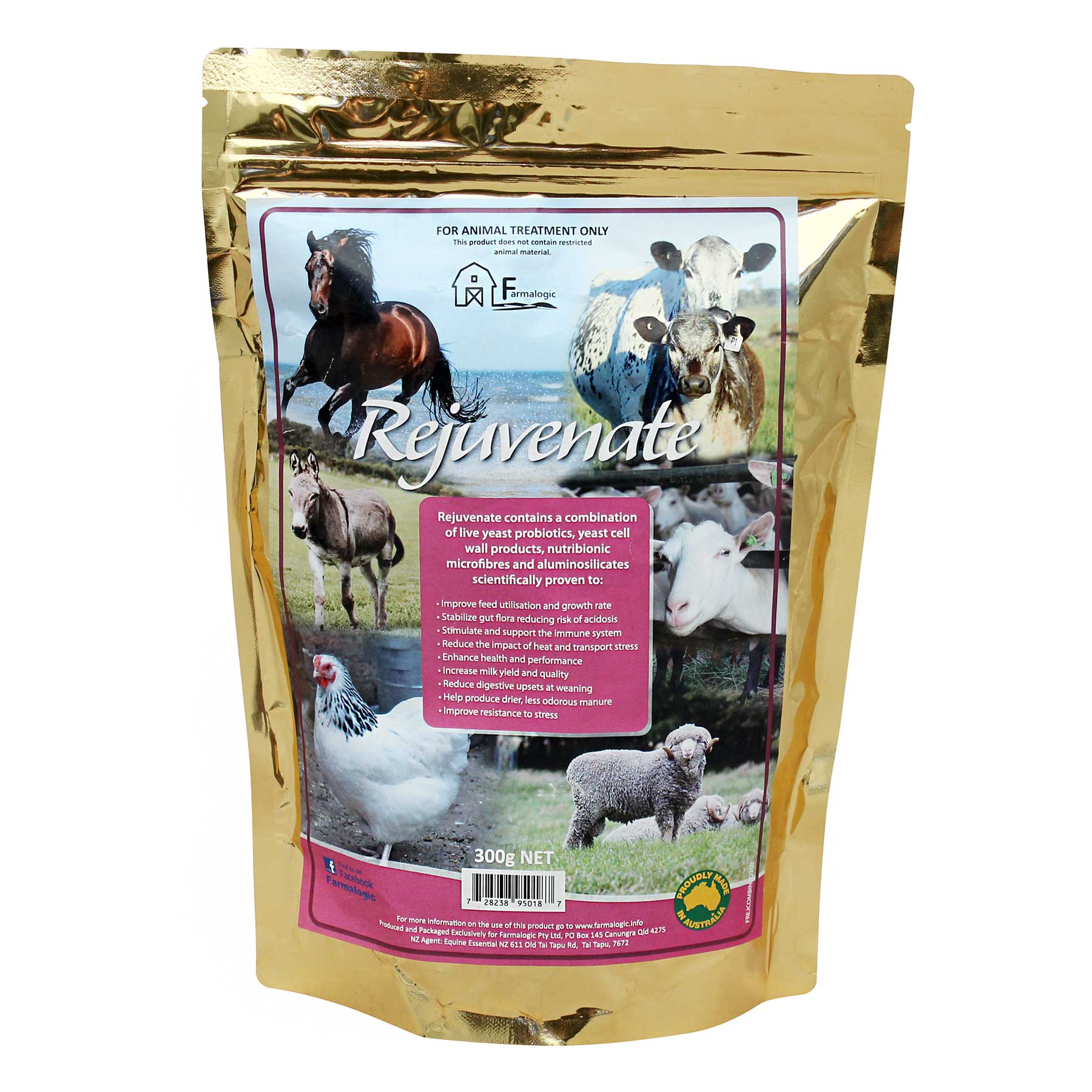 Farmalogic Rejuvenate contains two strains of probiotic live yeast, yeast cell wall products, nutribionic microfibres and aluminosilicates scientifically proven to: