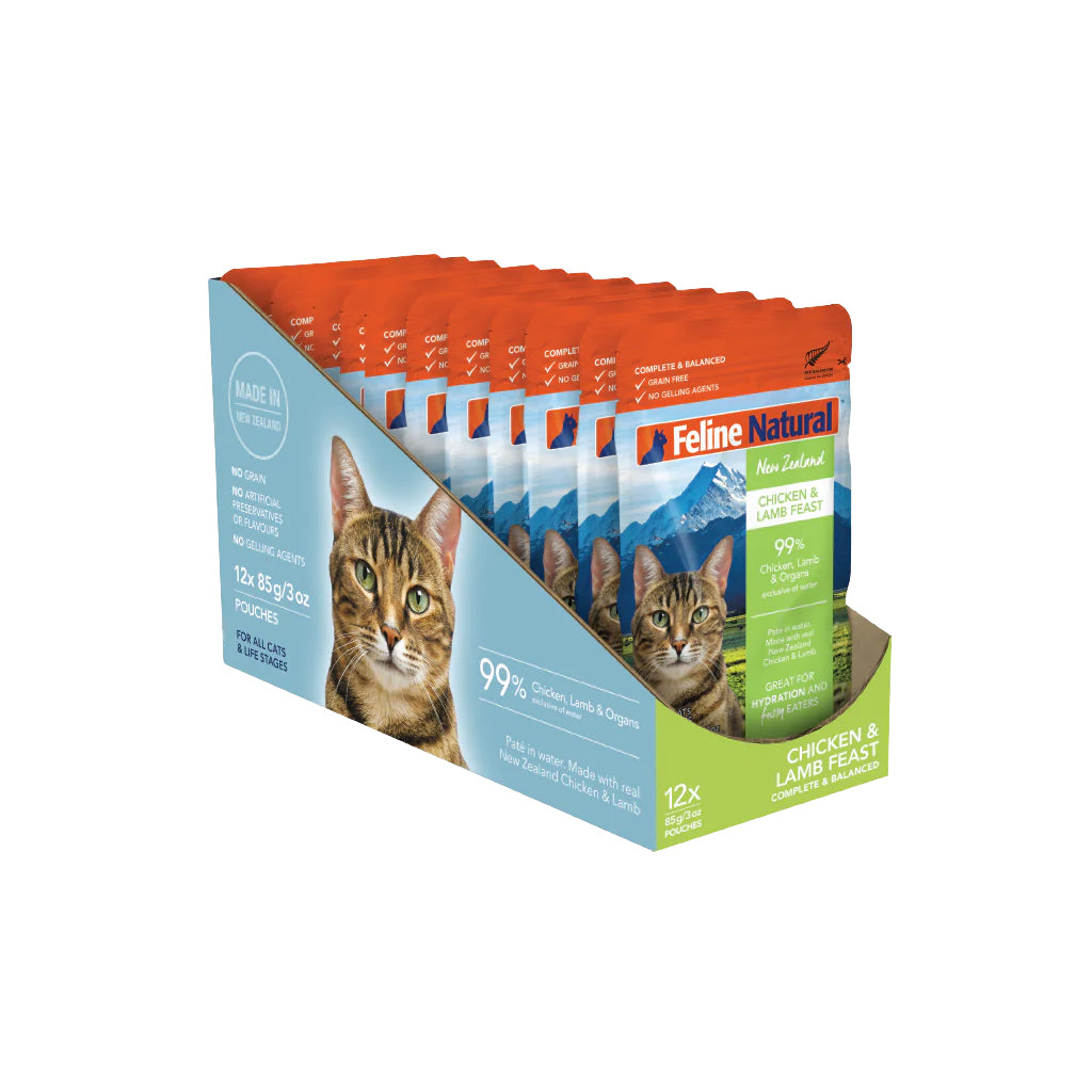 Feline Natural pouched cat food can be served on it's own as a complete & balanced meal, or served on top of your cat's existing food to increase it's nutrient content and improve it's taste.