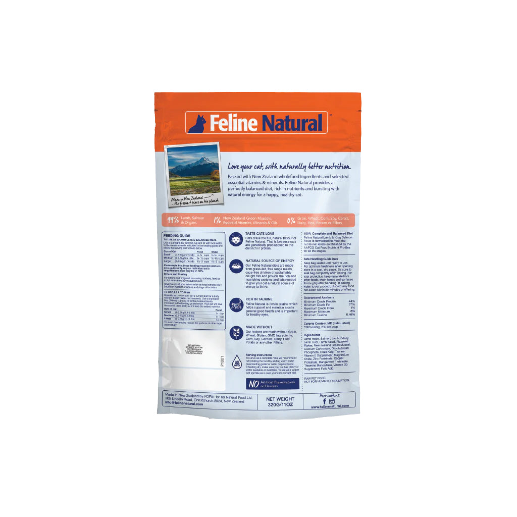 Feline Natural Freeze-dried cat food can be served on it's own as a complete & balanced meal, or served on top of your cat's existing food to increase it's nutrient content and improve it's taste.