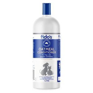 Want a great finish to a bath? Use Fido’s Oatmeal Conditioner to calm and soothe the skin and coat for shiny, happier pet. It replaces the natural oils that can be stripped out by bathing, giving you a beautiful finish on the skin and coat.