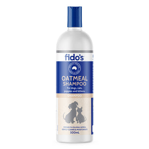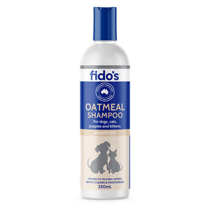 Fido’s Oatmeal Shampoo for dogs, cats, puppies and kittens, contains 2% colloidal oatmeal to gently clean, moisturise and sooth skin and coat.