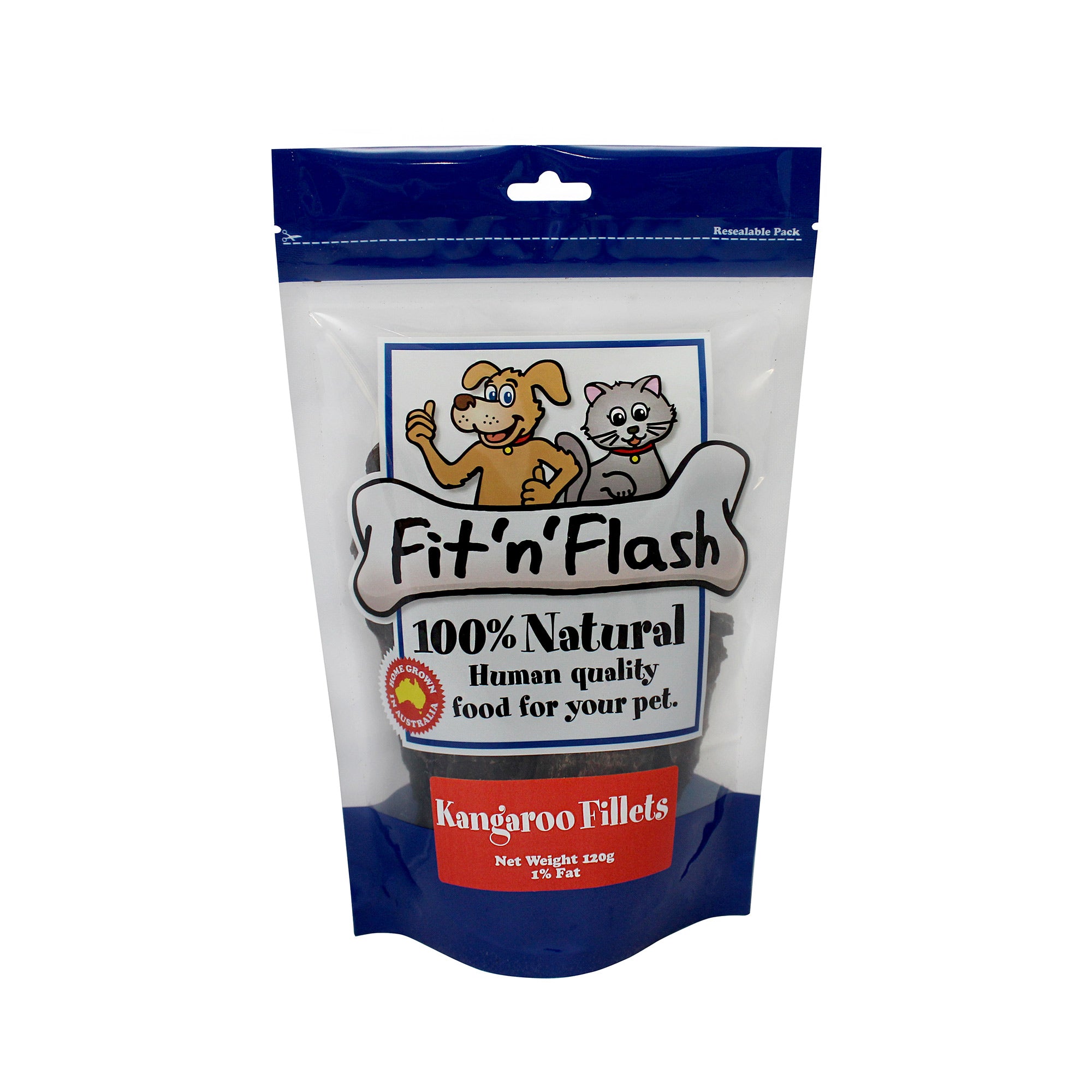 Dogs and Cats love the gamey flavour, and you can have the confidence that you are feeding the very best quality treat to your pet.Fit'n'Flash Kangaroo Fillet Treats are made with human grade export meat, and contain a very low fat content of only 1%.