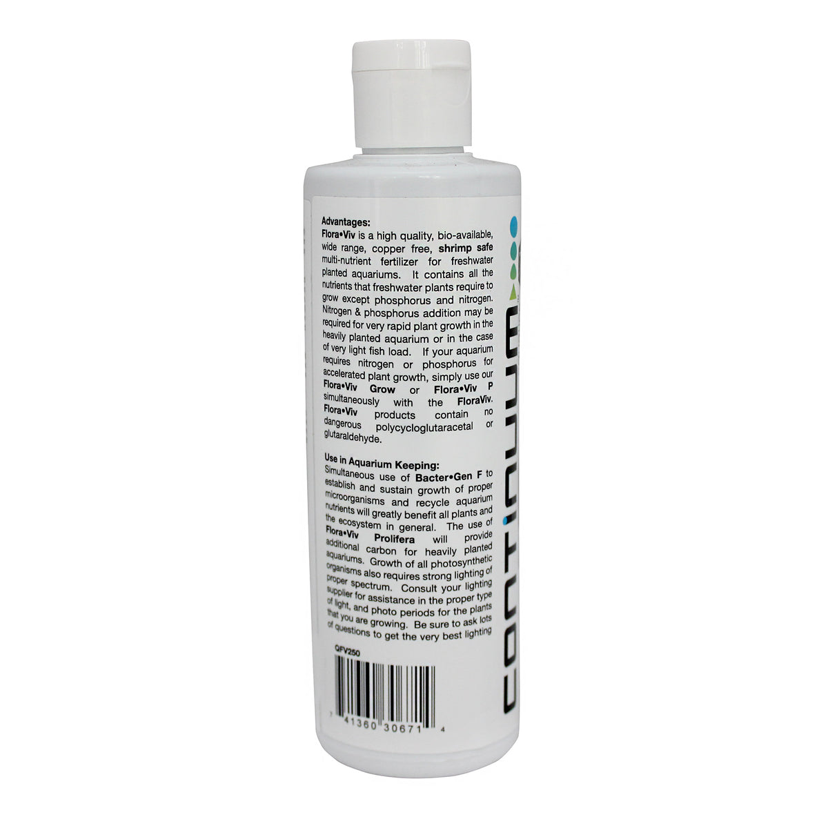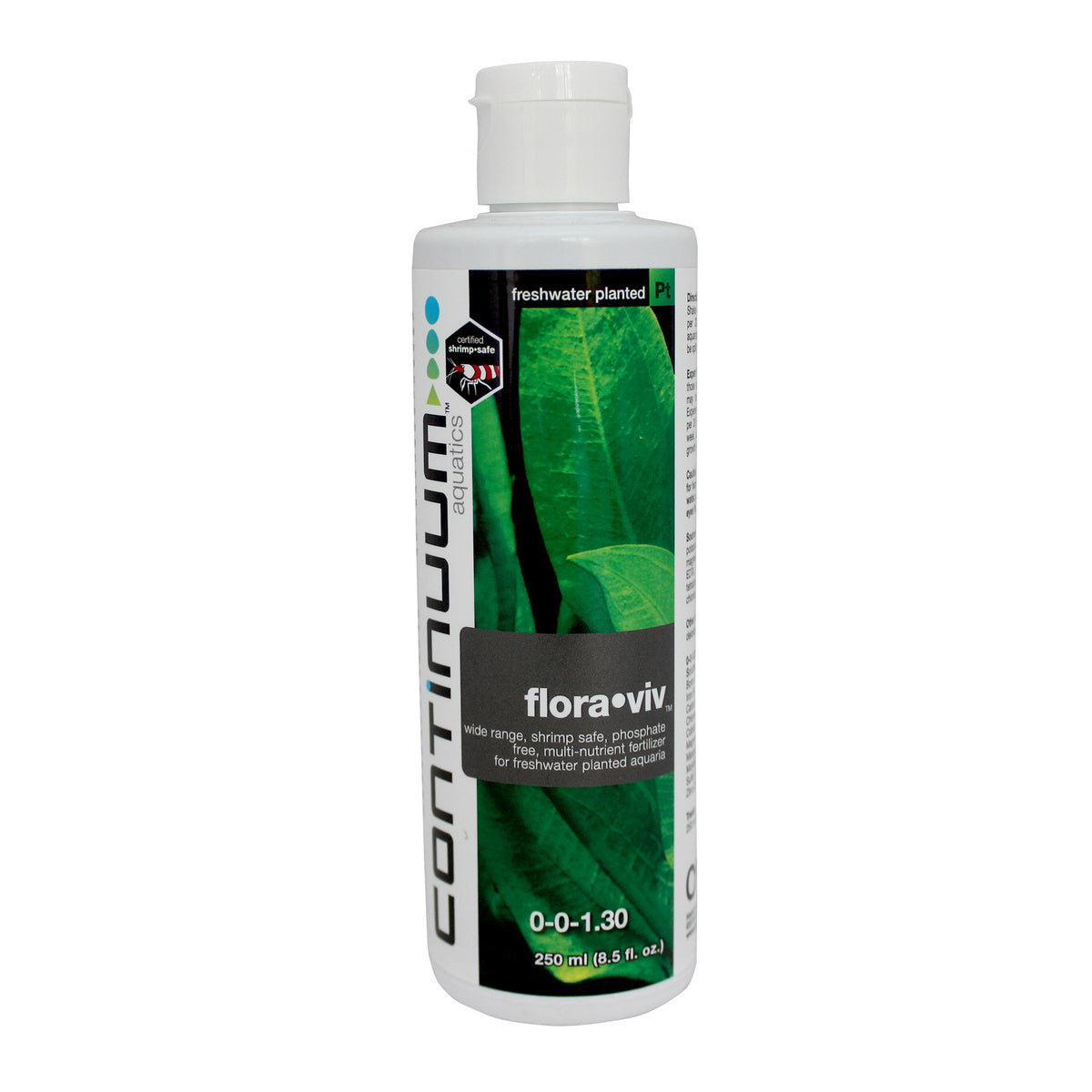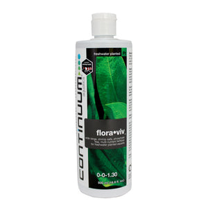 Flora•Viv is a high quality, bio-available, wide range, multi-nutrient fertilizer for freshwater planted aquariums. It contains all the nutrients that freshwater plants require to grow except phosphorus and nitrogen. Phosphorus is rarely required in any aquarium unless no animals are present at all. Nitrogen may be required for very rapid plant growth in the heavily planted aquarium or in the case of very light fish load. If your aquarium requires nitrogen or for accelerated plant growth, simply use our Flora•Viv Grow.