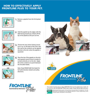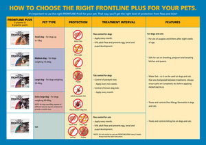 I buy the 40-60kg Frontline Plus, I open a tube and put the contents in a small bottle and then, using a syringe, use a small amount between my five dogs. I find a smaller amount is just as effective if used monthly. This is a very economical and very good way to save money and, more importantly, to keep my dogs free of fleas. I don't find it necessary to use it during the colder months, only from summer though to the end of autumn.