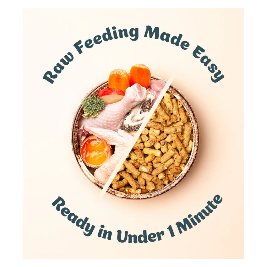Once water is added, let the food stand for around 30-seconds to reconstitute.The food will start to swell as it absorbs the water. When most of the water is absorbed, allow your pet to enjoy their meal.