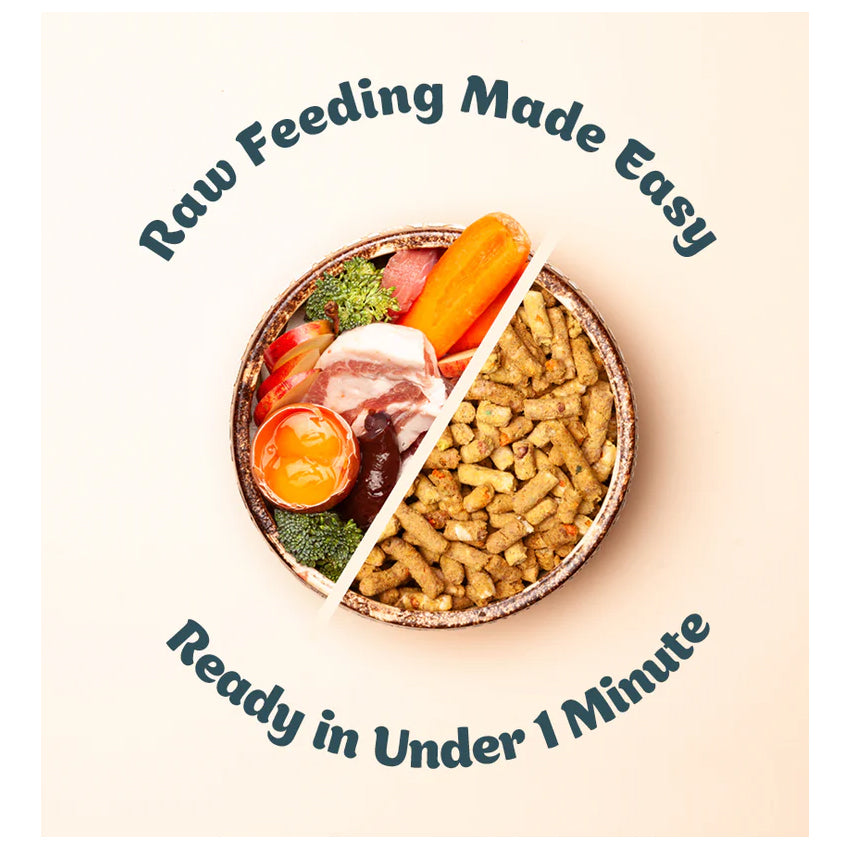 Once water is added, let the food stand for around 30-seconds to reconstitute.The food will start to swell as it absorbs the water. When most of the water is absorbed, allow your pet to enjoy their meal.