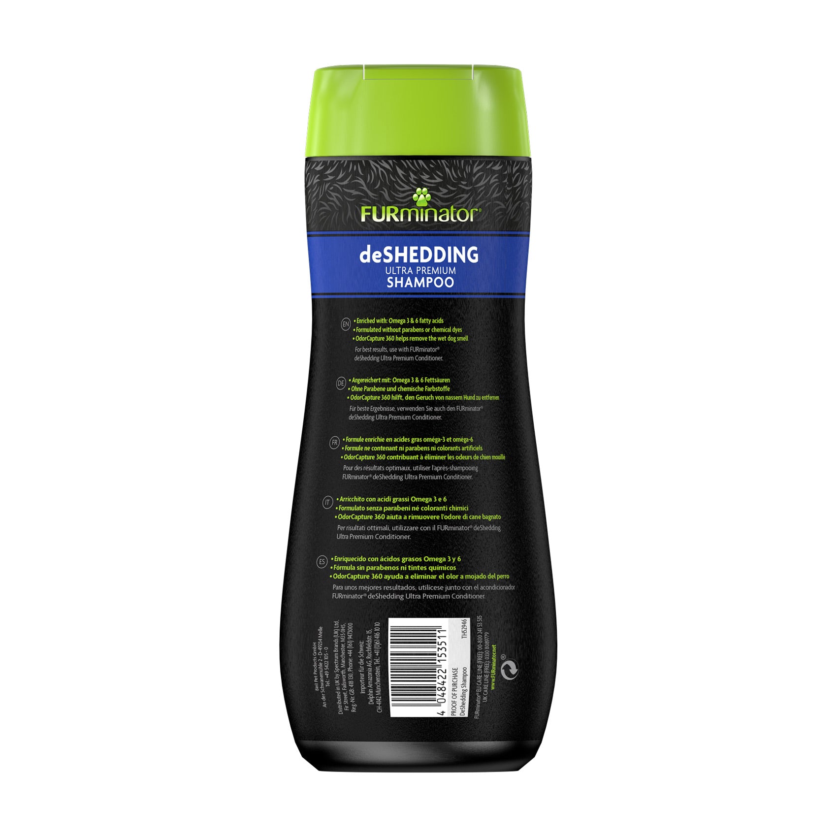 FURminator deShedding Ultra Premium Shampoo is formulated with multiple conditioning agents that, when used with FURminator deShedding Tools, offers a complete system for deShedding, cleansing and conditioning.