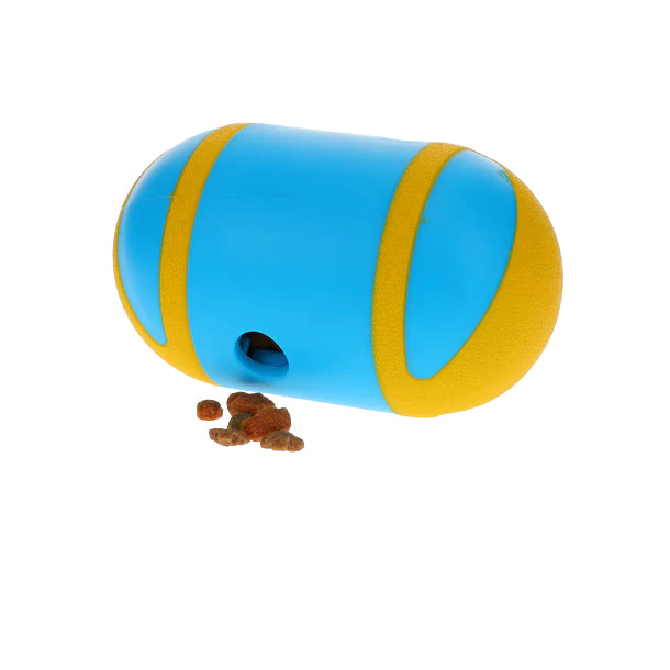 This capsule-shaped toy holds more than one cup of kibble, which is loaded by unscrewing the overmolded cap.