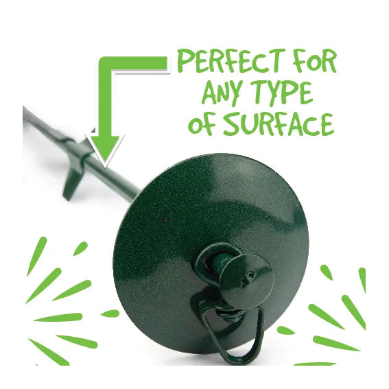 This heavy duty Tie Out Stake with domed top is perfect for any type of surface.