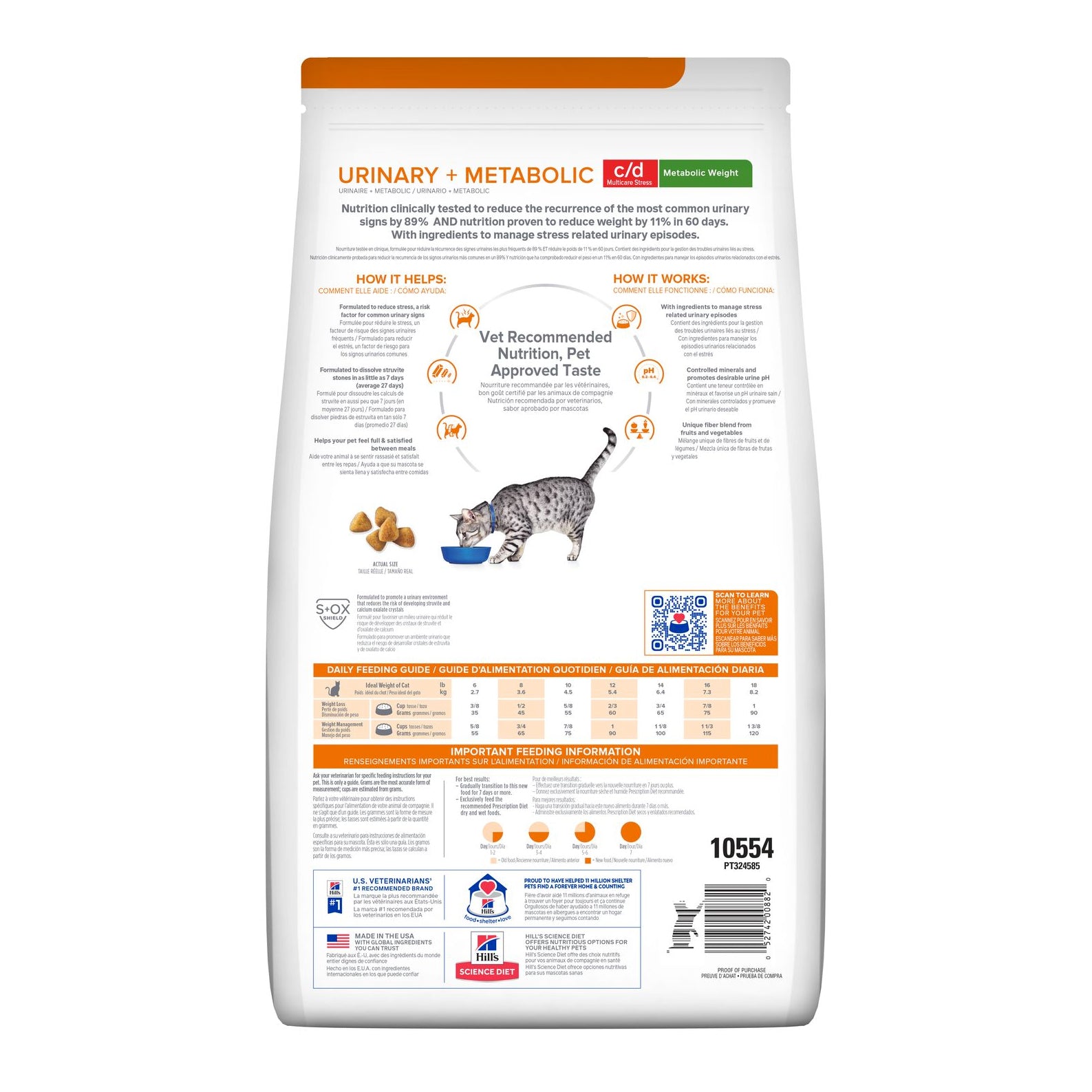 Hill's Prescription Diet Metabolic + Urinary Stress Feline provides the nutrition your cat needs during weight loss and maintenance while improving urinary health and managing stress.