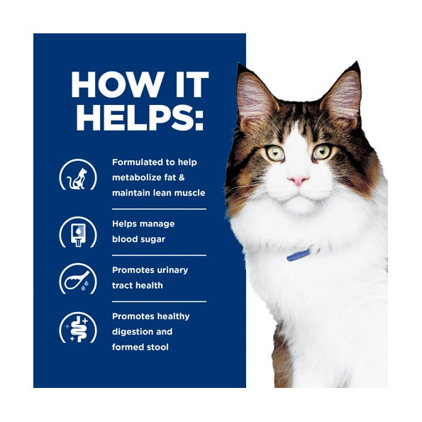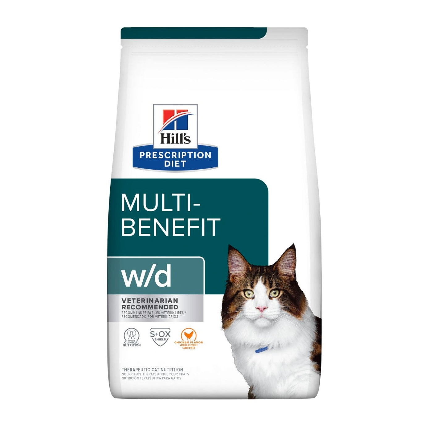 Hill's Prescription Diet w/d Multi-Benefit is a complete and balanced dry food that provides all the nutrition your cat needs. Please consult your veterinarian for further information on how Hill’s Prescription Diet foods can help your cat to continue to enjoy a happy and active life.