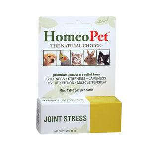 HomeoPet JOINT STRESS may help your dog or cat by and assist in improving mobility. Its all-natural ingredients mean there are no nasty side-effects and the liquid drops can be used alongside pharmaceuticals and other treatments.