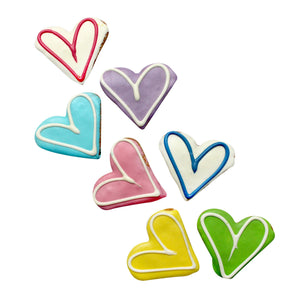 The Big Doggy Love Hearts feature a nutty biscuit base with beef liver flavour through the mix. They are then coated with the Huds & Toke awesome special no melt carob and yoghurt frosting.