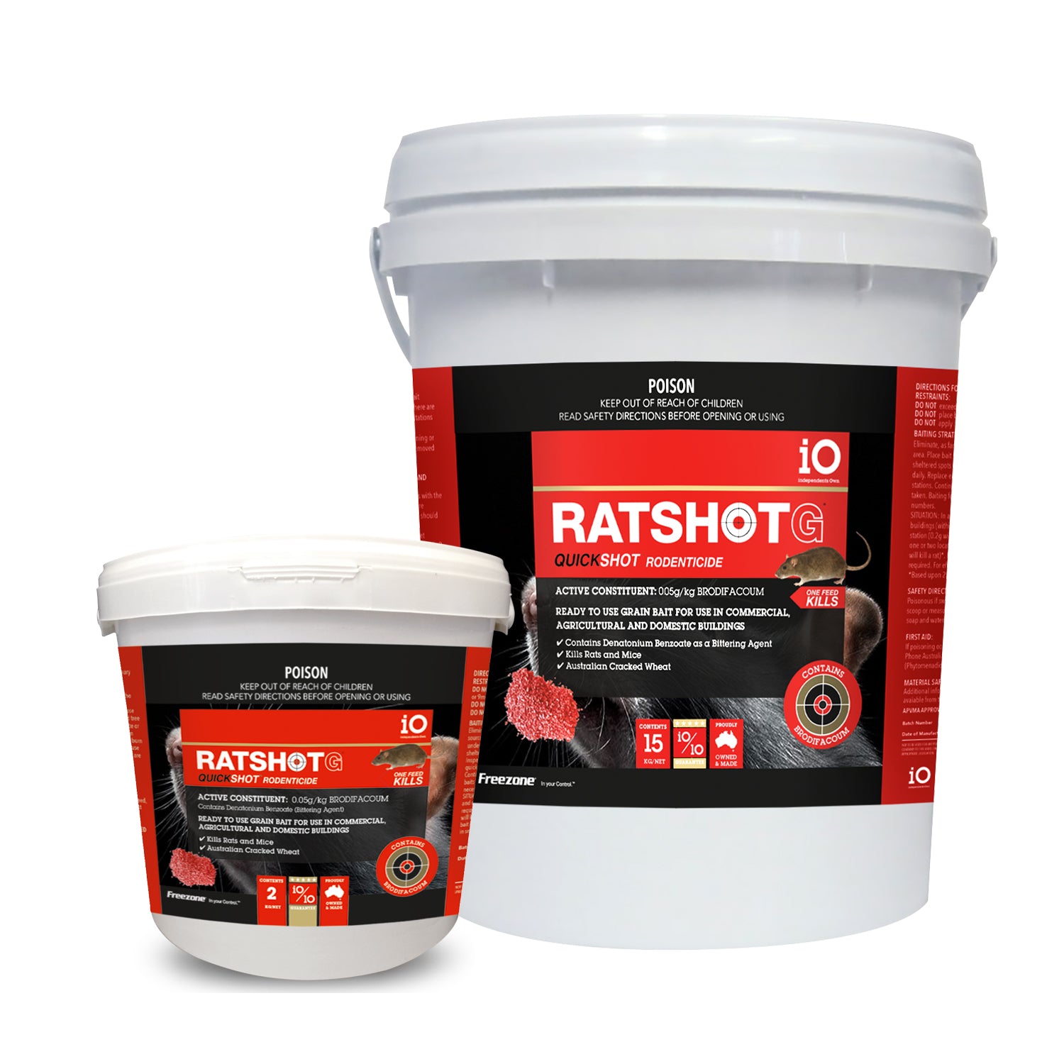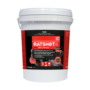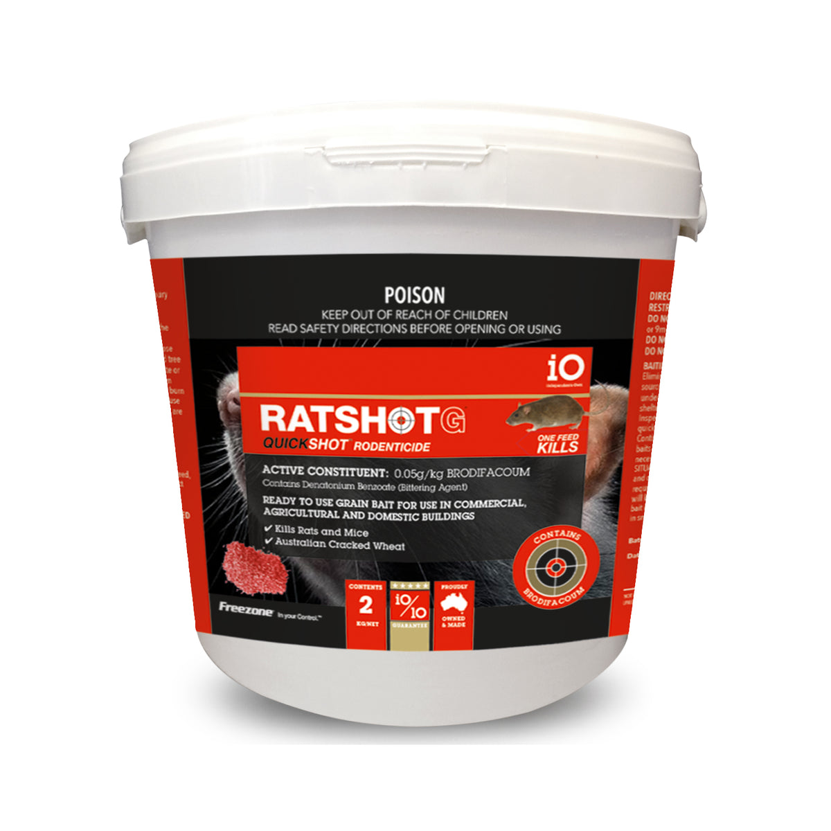 iO Ratshot QuickShot Grain Bait Red is powered by Brodifacoum, the most powerful active ingredient on the market, coupled with Australian cracked wheat, delivering you an exceptionally cost efficient rodenticide for a quick kill of both mice & rats in a single feed.