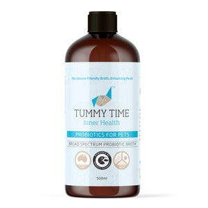 Tummy Time is a broad spectrum probiotic broth for pets.