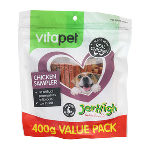 Ingredients: Jerhigh Chicken Salami, Chicken Sticks, Chicken Strips, Chicken Bacon and Liver Browny.