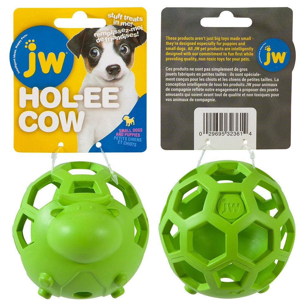 The JW Hol-ee Cow is specifically designed for small dogs and features the same non-toxic, durable, super-stretchy design as the original Hol-ee Roller.