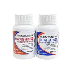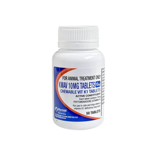 K-Mav Chewable Vitamn K Tablets are for use as an antidote in the treatment of warfarin-type anticoagulant poisoning of cats & dogs.