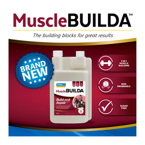• MuscleBUILDA is designed to be mixed in the horse’s feed.