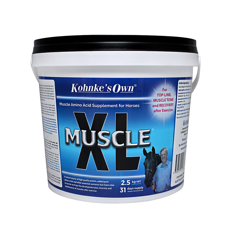 Kohnke's Own Muscle XL is the ultimate 'Muscle Food' which can help your horse gain beautiful top-line, improve muscle strength and stamina as well as support recovery after exercise in hard working horses.