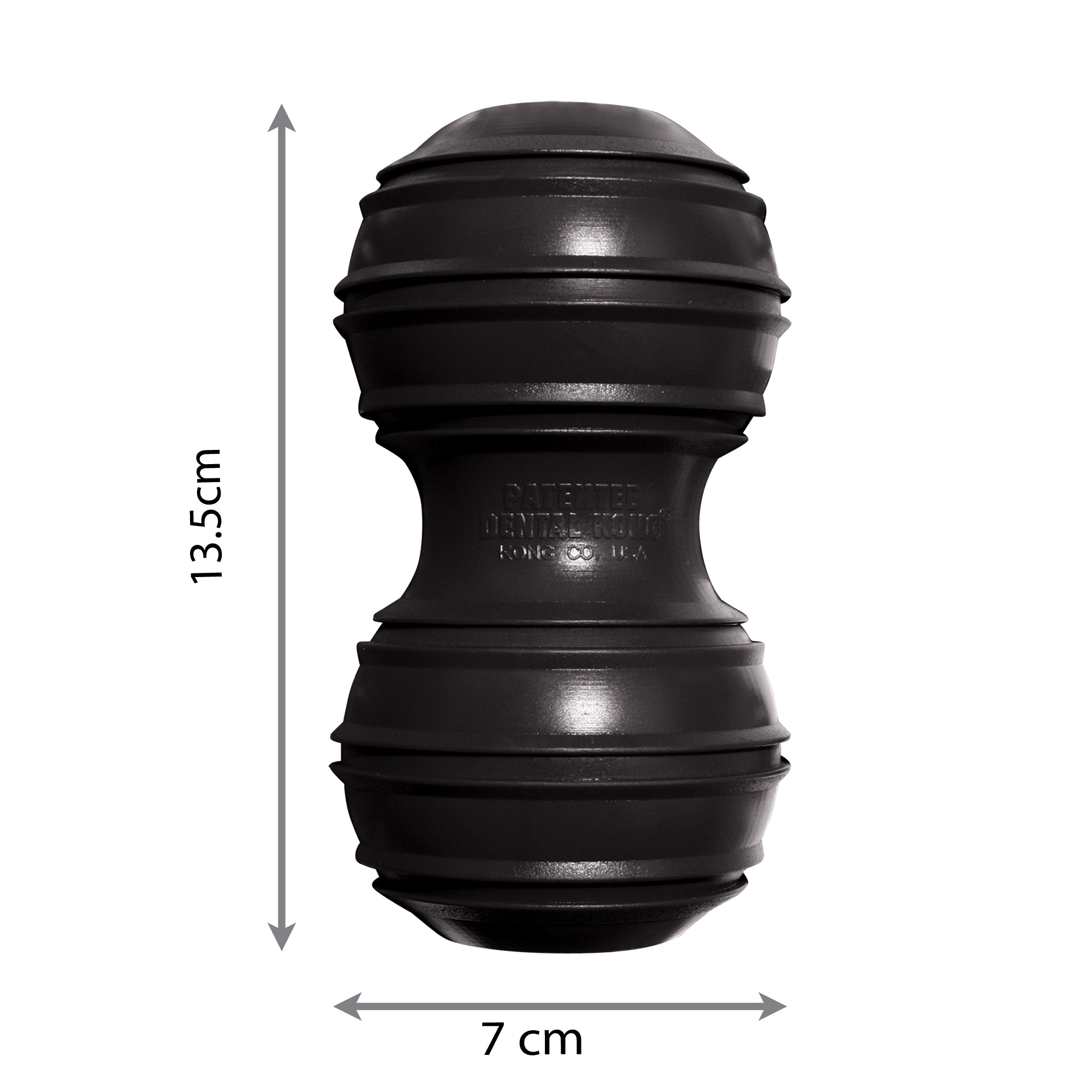 The KONG Dental rubber dog toy is designed for cleaning teeth and gums while giving an appropriate chewing outlet and supporting a dog's instinctual needs. Made out of KONG Extreme Rubber formula, the KONG Dental toy has grooves that help clean teeth.