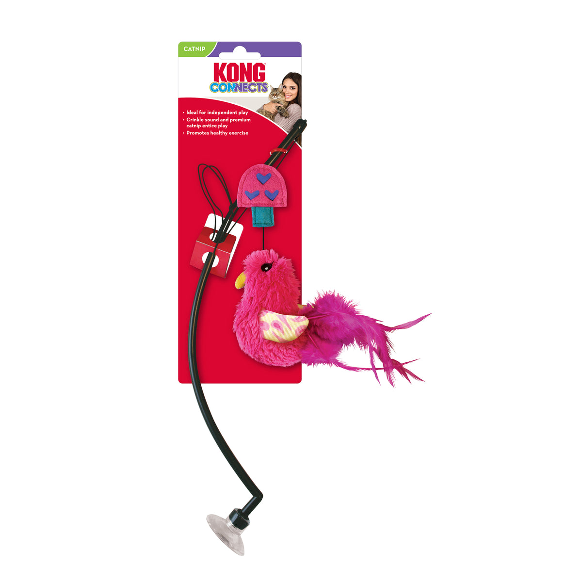 Each toy contains KONG Premium North American Catnip, bright feathers and a crinkle sound for added stimulation.