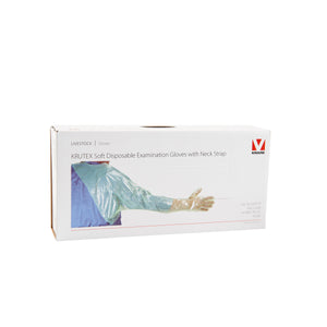 Same reliable Krutex quality as standard-type Krutex examination gloves, but with addition of shoulder and arm-pit protection area. Neck strap keeps glove and shoulder protection in place in all circumstances. No more messed-up overalls and shirts.