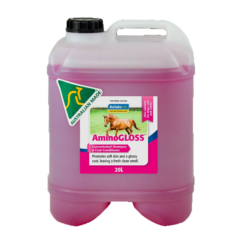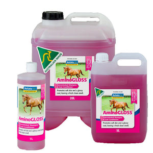 The amino acids in AminoGLOSS help clean and nourish the skin and increase the gloss of the hair. Your horses coat will not only be healthier, it will look healthier too. The highly concentrated form of AminoGLOSS means you only need to use a small amount each wash, making it very economical. However, although concentrated, AminoGLOSS is mild enough to use daily. The lanolin, almond oil and coconut oil contained in AminoGLOSS help to soften the coat, while the cherry fragrance leaves the coat smelling beautiful.