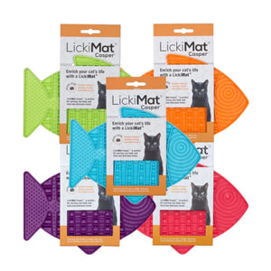 MIMICS CAT'S PREDATORY FEEDING – LickiMat Casper enriches feeding time for cats by allowing greater activity, like they would experience in the wild. LickiMat Casper stops "whisker stress" and allows your cat to feed in a crouching position with a full view of their surrounds, reducing stress and anxiety. The pockets are designed to promote licking action to extract food and slow down eating and make meals or treats last a long time.