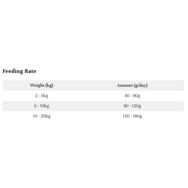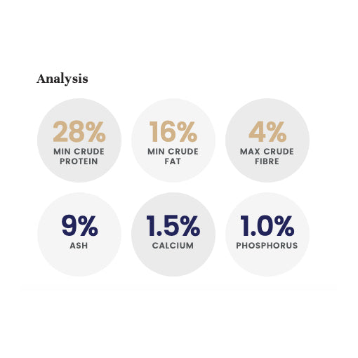 Turkey, poultry oil, Australian lamb, egg, lentils, field peas, chickpeas, sweet lupins, carrots, tapioca, spinach, parsley, kelp, yeast extract, vitamins A, C, D3, E, K, B1, B2, B6, B12, niacin, pantothenate, folacin, biotin and natural organic acids, plus added minerals calcium, phosphorus, sodium, copper, zinc, iron, manganese and iodine. Also contains natural flavours, Yucca schidigera extract and is preserved with natural vitamin E and rosemary oil.