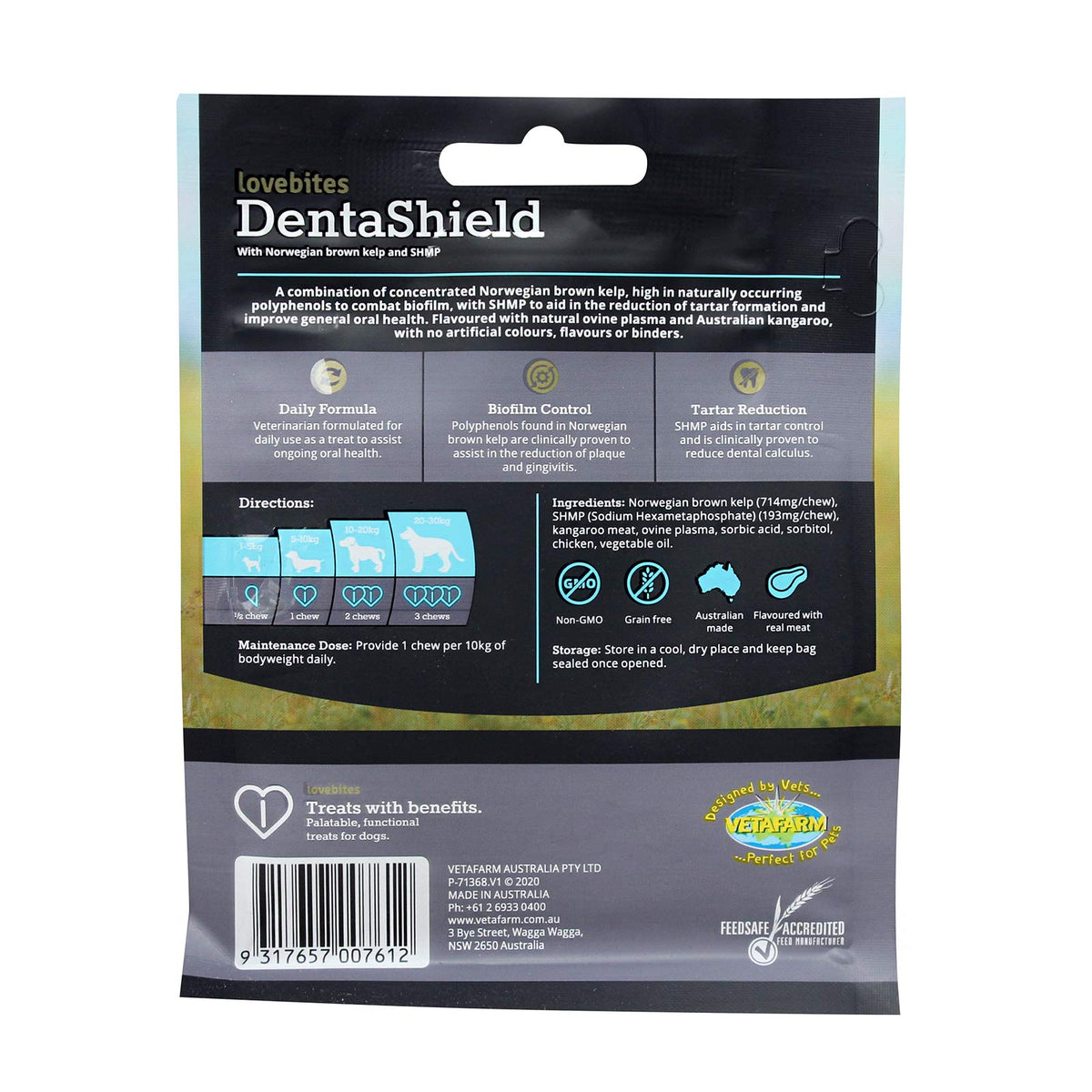 Lovebites DentaShield chews combat dental disease using a unique combination of Norwegian brown kelp and SHMP.