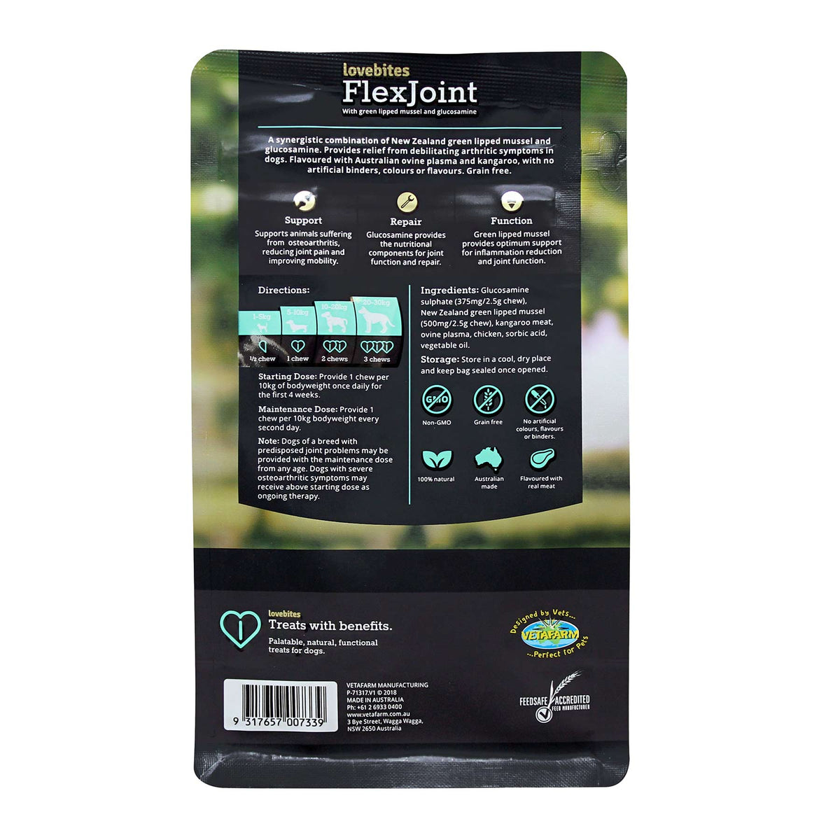 We got the Lovebites Flex Joint chews for one of our working dogs who was getting a bit stiff and sore after work. They have made a big difference to him and his quality of life. I will be purchasing them again for him. He is much better.