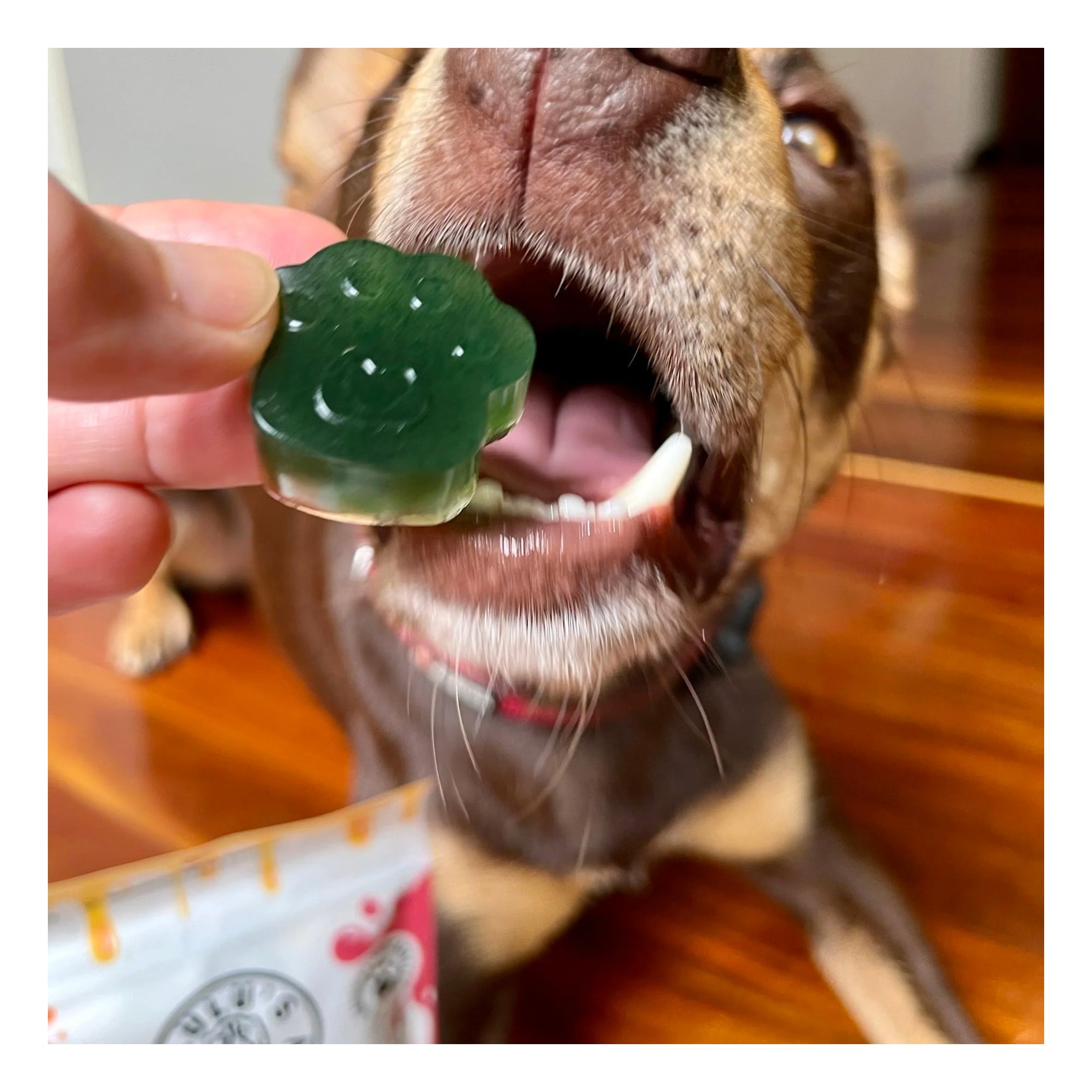Lulu’s Kitchen Spinach & Green Spirulina Doggy Jelly is packed with goodness for overall health! A great source of essential fatty acids, an allergy reducer, high in Vitamin A, Vitamin B, Vitamin C, Vitamin K, Iron, antioxidants and beta-carotene - this one packs a healthy doggy paw-punch!