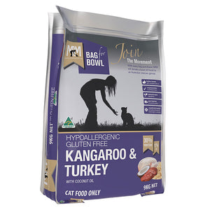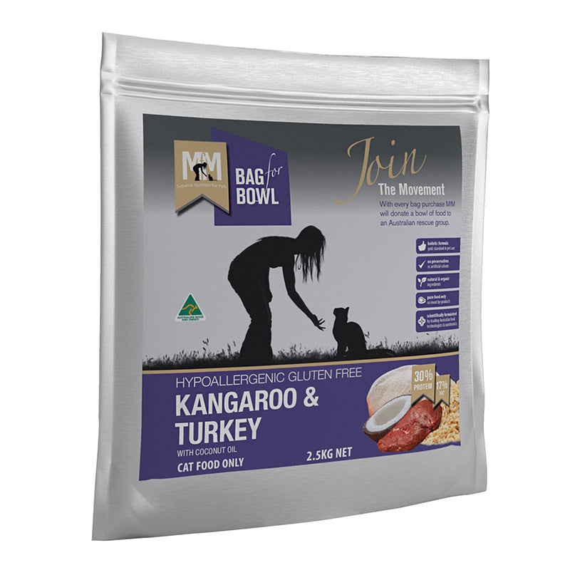 Meals for Meows Cat Kangaroo & Turkey is Hypoallergenic and Gluten Free. Also contains Brown Rice.