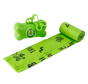 Bone shaped dispenser, complete with 2 rolls of compostable bags is the ulti-mutt combo for your daily walk with your furry friend!