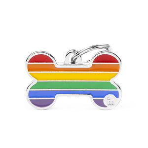 The My Family Rainbow Bone Pet ID Tag is lively and joyful and hand glazed in Italy.
