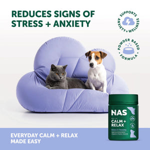 Whether it’s thunderstorms, car rides, vet visits or separation anxiety, some pets need extra support to stay calm and feel secure. NAS Calm & Relax is a scientifically formulated blend of amino acids, adaptogenic herbs and gut-supporting nutrients to help pets manage stress naturally.