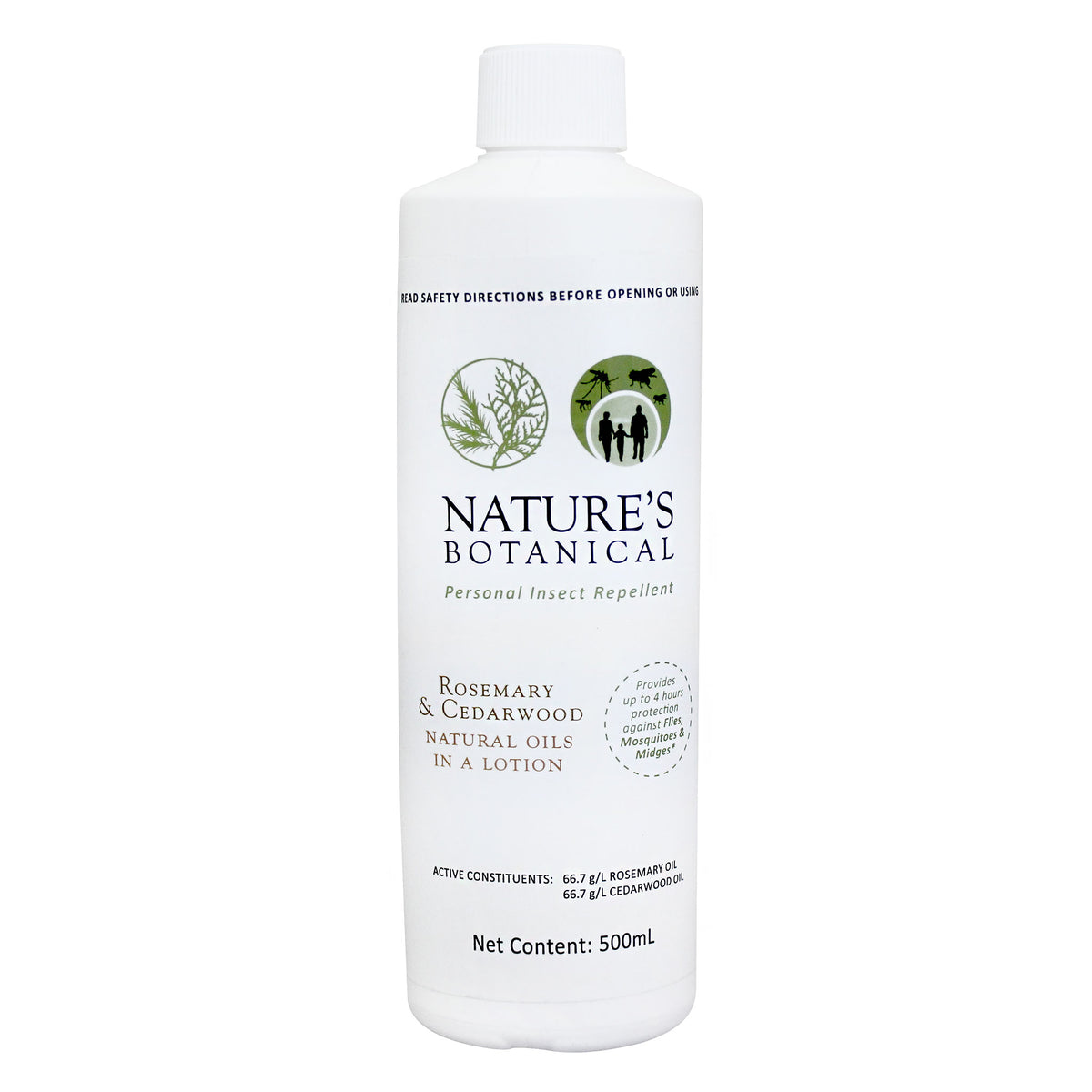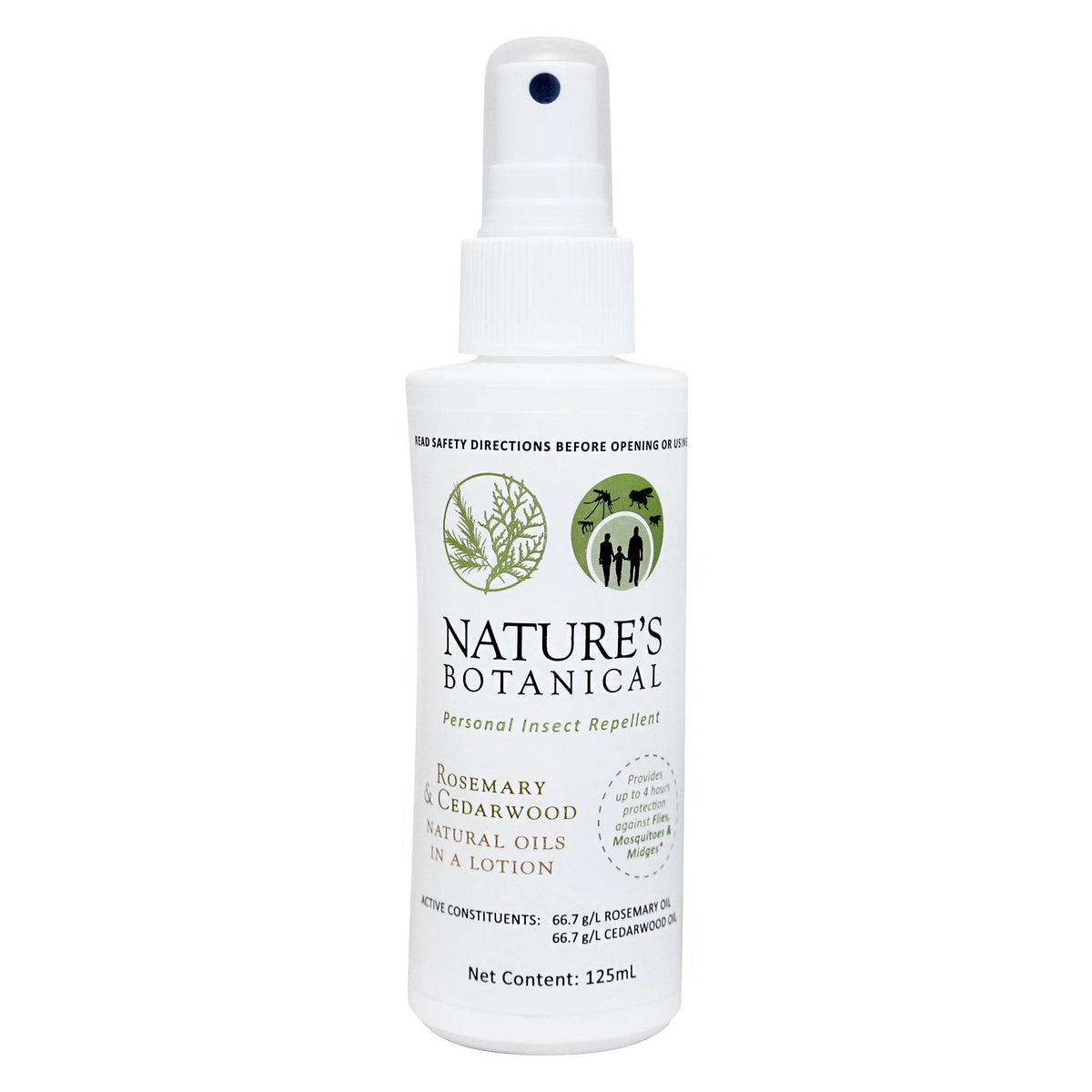 Nature’s Botanical Rosemary and Cedarwood Lotion is an ALL NATURAL insect repellent (registered for use on people) that repels flies, sandflies, midges and mosquitoes for up to 4 hours. Many people have also found success using it on their dogs and horses although there are no specific label claims for this purpose.
