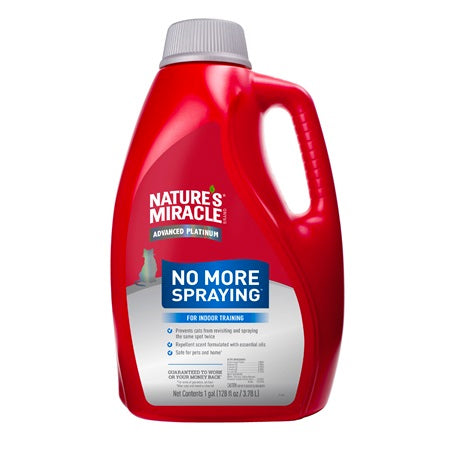 To use, apply Nature's Miracle Advanced Platinum No More Spraying to areas you want to keep cats from revisiting and spraying the same spot twice.