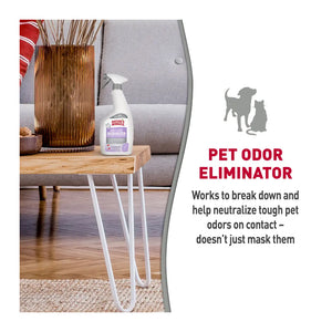 Spray in the air or on surfaces to help neutralize pet odours on fabrics and hard surfaces, including carpet, hard floor, crates and more spaces throughout the home.