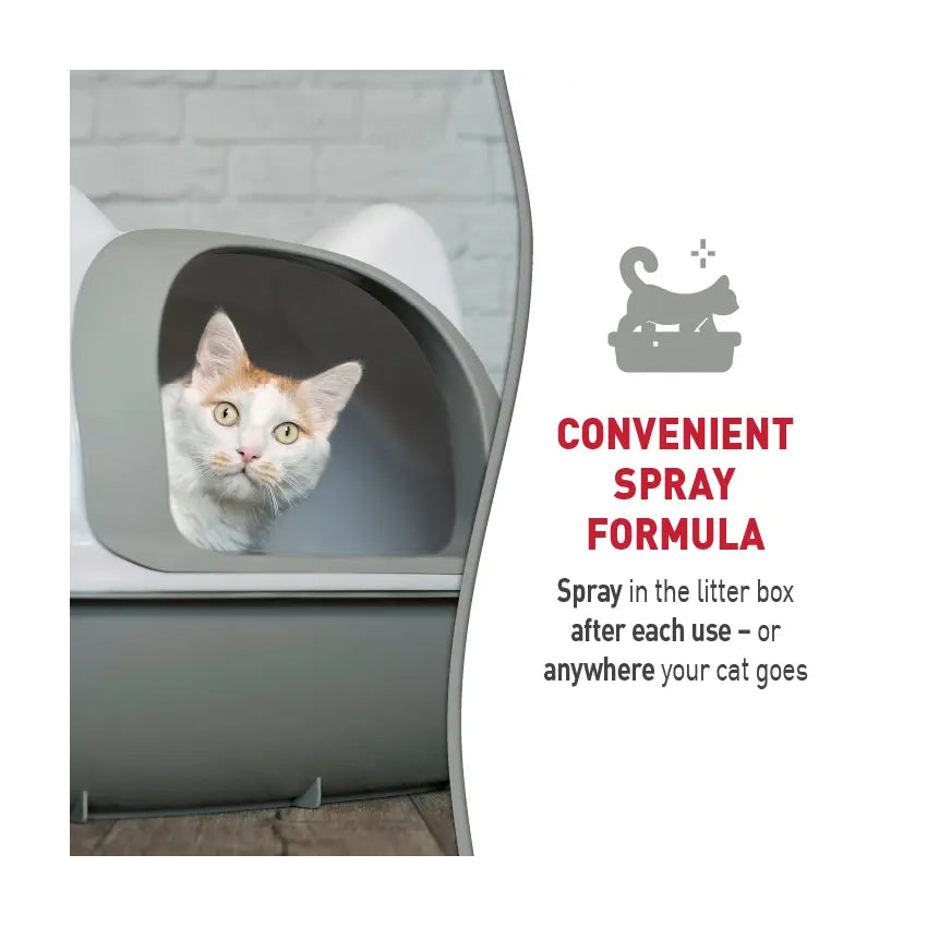 Unlike many products that may simply mask unpleasant pet odours, this formula breaks down and destroys tough litter box odours. The triple-action formula is effective on airborne, fabric and hard-surface odours, so you can spray in the air or on surfaces such as litter boxes, litter box mats or anywhere your pet goes. The unscented formula contains OdorCapture360 technology that controls faeces, urine and ammonia odours.