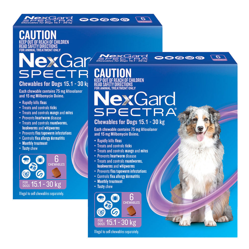 Broad Spectrum Parasite Protection: NexGard Spectra offers protection against a wide range of parasites in a single treatment. It is effective against fleas, ticks, heartworms, and various intestinal worms (roundworms, hookworms, and whipworms). This broad-spectrum capability you can can protect your dog against multiple parasites without needing to administer multiple medications.
