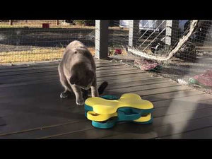 Perfect for my food-loving disabled dog (foreleg amputee). He could lie down and use his nose to work the toy. Dinner lasted 5 minutes rather than 15 seconds in a bowl, whilst getting a mental workout.