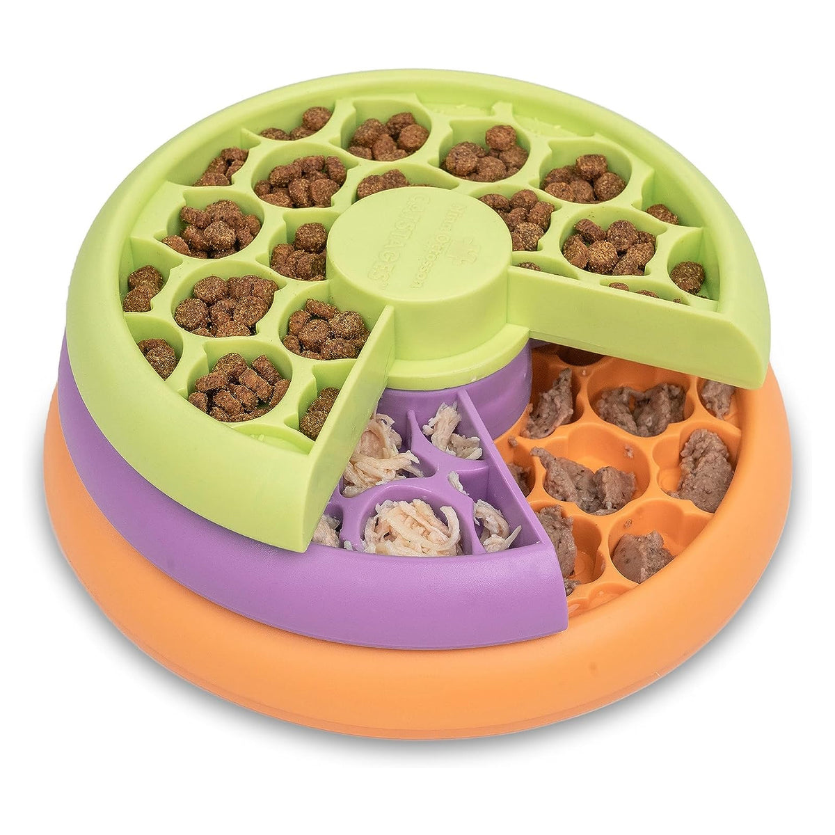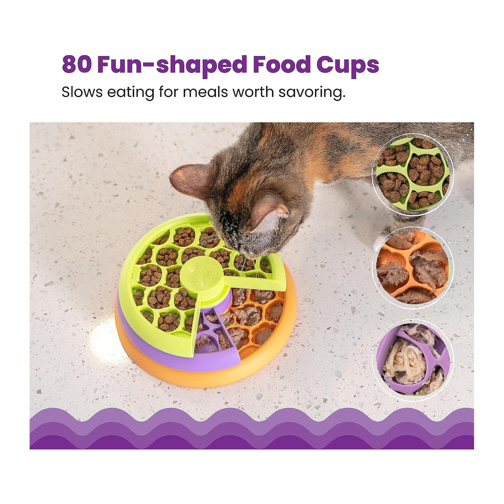 PUZZLE AND FUN FEEDER IN ONE: With over 80 food compartment this puzzle is a combination of an interactive cat puzzle toy and fun feeder. Kitty Lickin' Layers engages and challenges cats with its three spinning layers that reveal hidden treats or food inside.