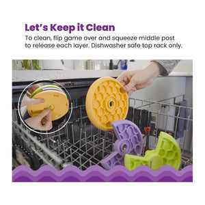 EASY TO FILL & CLEAN: Take apart all three layers by flipping the game over and squeezing the middle post to release each layer. Dishwasher safe on top rack on low heat setting.